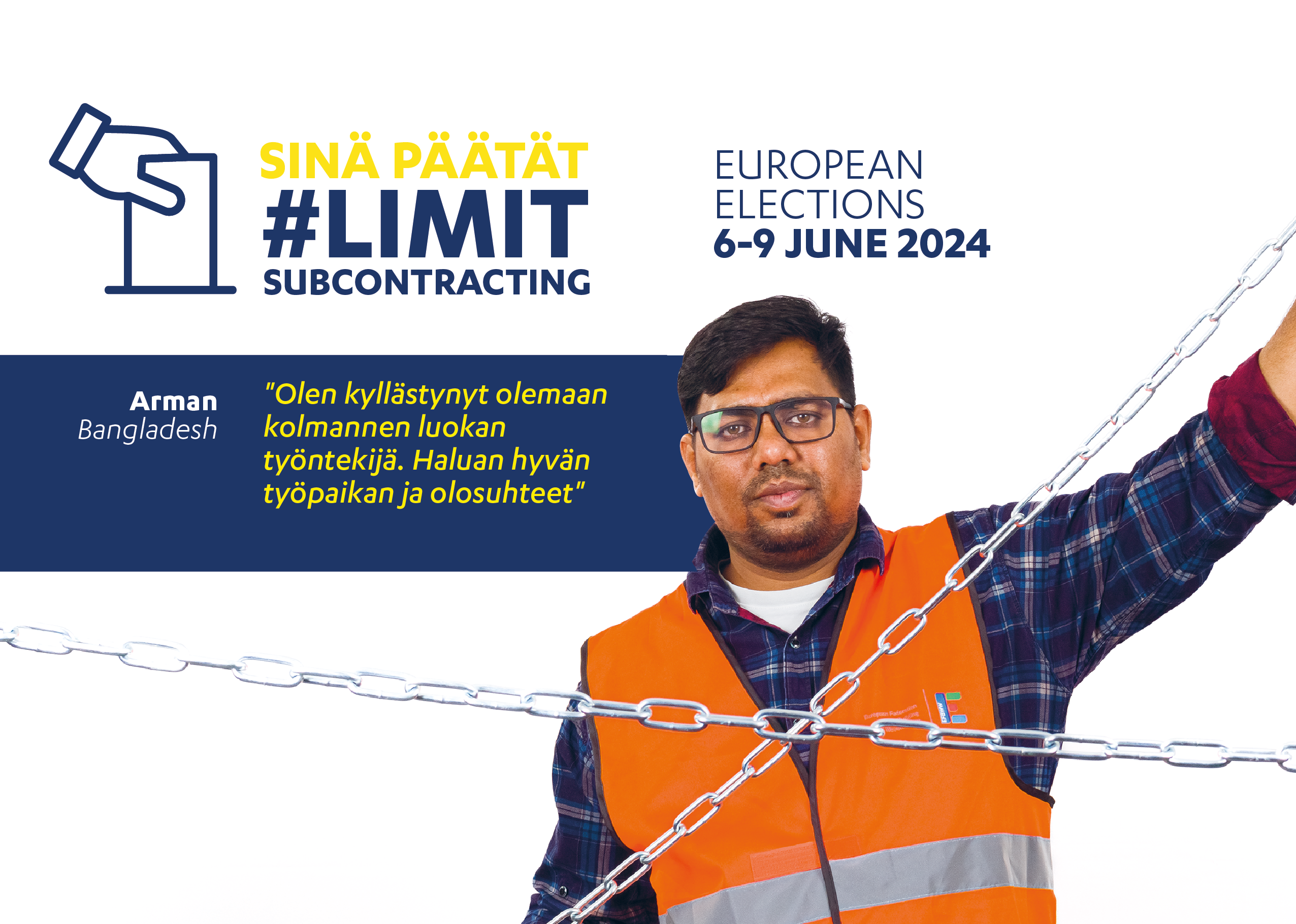 EU legislation must ensure that subcontracting is limited to a maximum of one or two sub-layers. Also, the permitted percentage of employed workers, the number of tasks, and the percentage of the turnover generated down the subcontracting chain must be limited.
